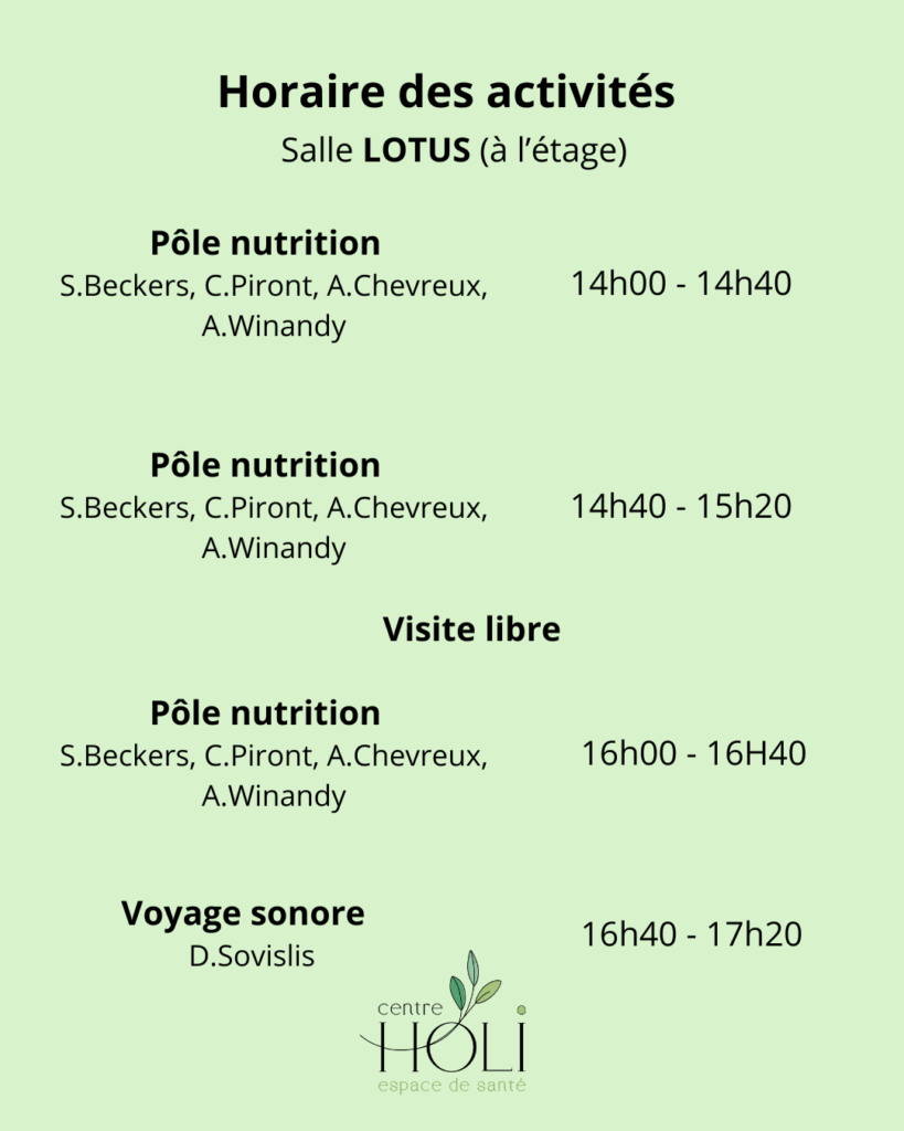 Concernant les activités découverte de l’après-midi, il est vivement recommandé de s’inscrire via l’adresse info@centreholi.be
